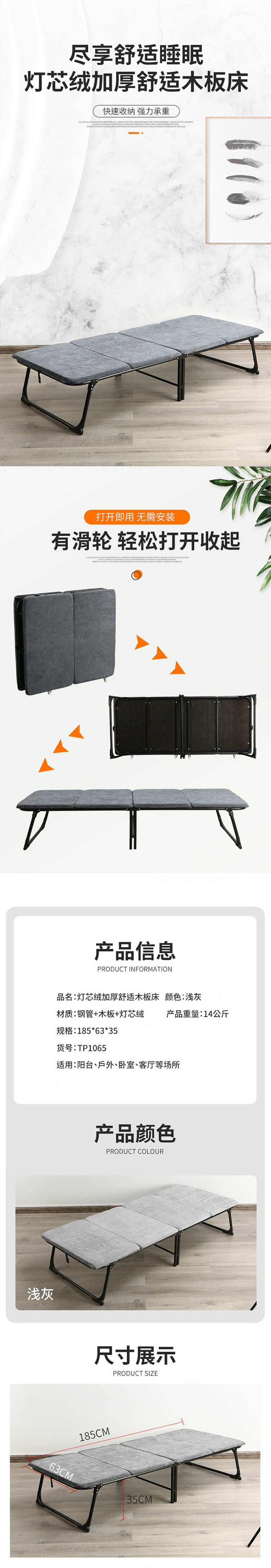 商品名称:三极 TP1065 185*63*35CM 折叠床 浅灰(单位:张)