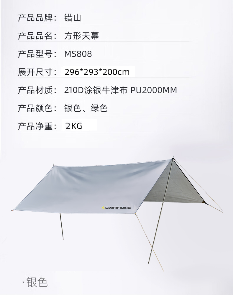 商品名称:错山 MS808 296*293*200cm 方形天幕 银色(单位:顶)