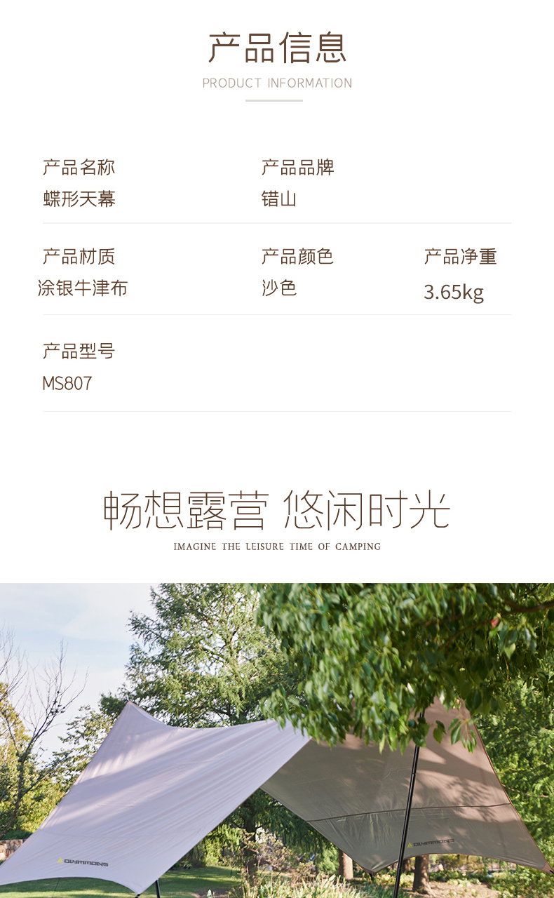 商品名称:错山 MS808 430*418*240CM 蝶形天幕 流金沙(单位:顶)
