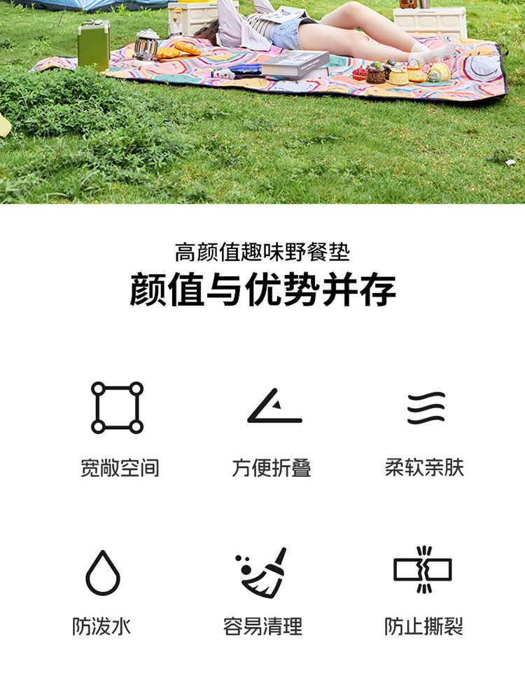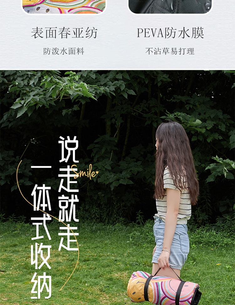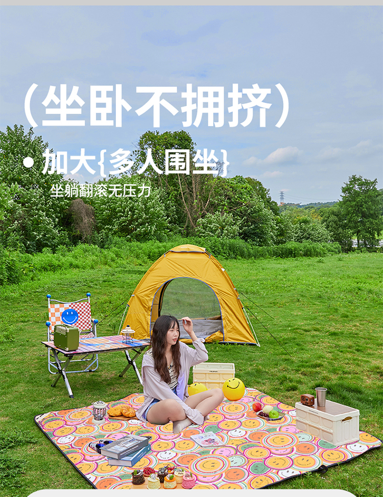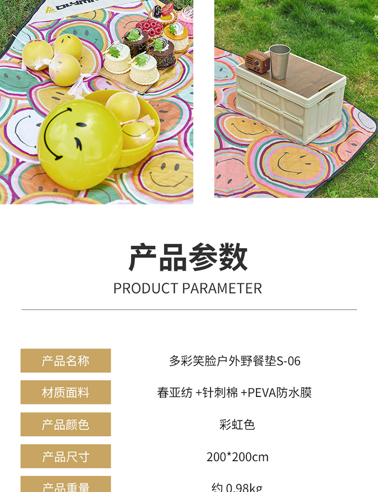商品名称:错山 S-06 200*200cm 多彩笑脸户外野餐垫 彩虹色(单位:个)
