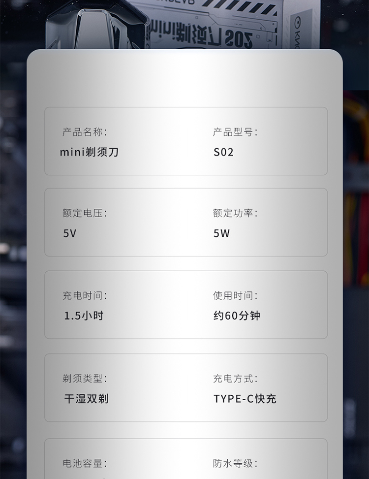 商品名称:敲打熊 S02 智能感应 剃须刀 银色(单位:台)