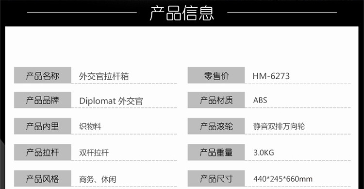 商品名称:外交官 HM-6273 24英寸 拉杆箱 典雅蓝色(单位:个)