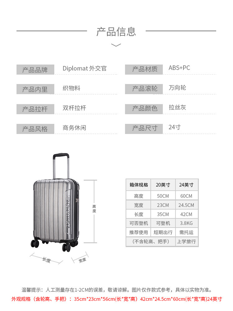 商品名称:外交官 HM-6283 24英寸 拉杆箱 拉丝灰色(单位:个)