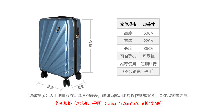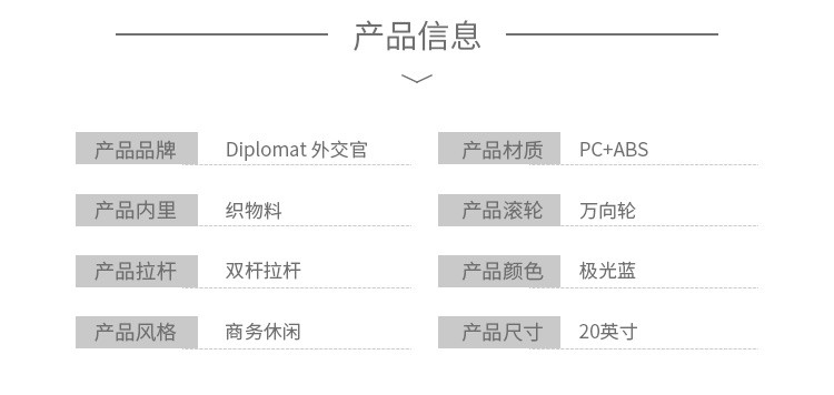 商品名称:外交官 HM-6302 20英寸 拉杆箱 极光蓝色(单位:个)