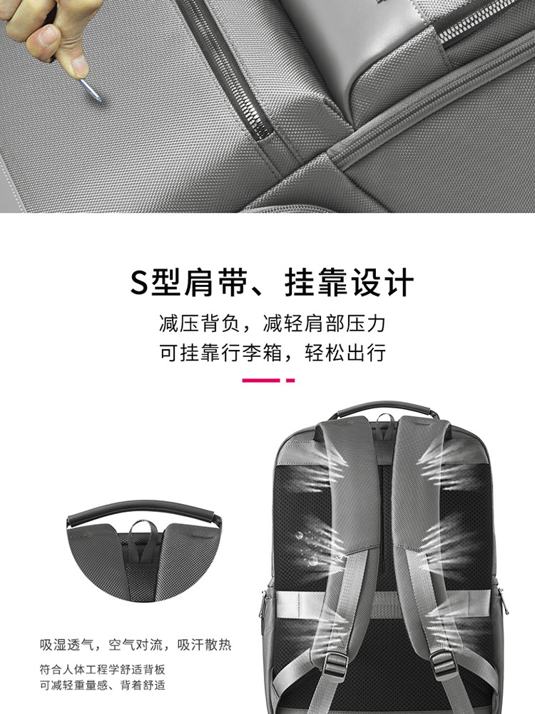 商品名称:外交官 HM-2725L 织物料 双肩包 灰色(单位:个)