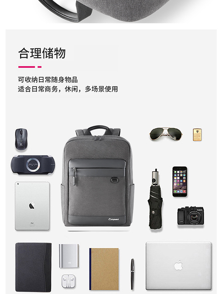商品名称:外交官 HM-2718L-1 织物料 双肩包 浅灰色(单位:个)