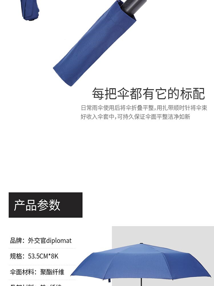 商品名称:外交官 DFJ-602 聚酯纤维 手开三折伞 深蓝色(单位:把)