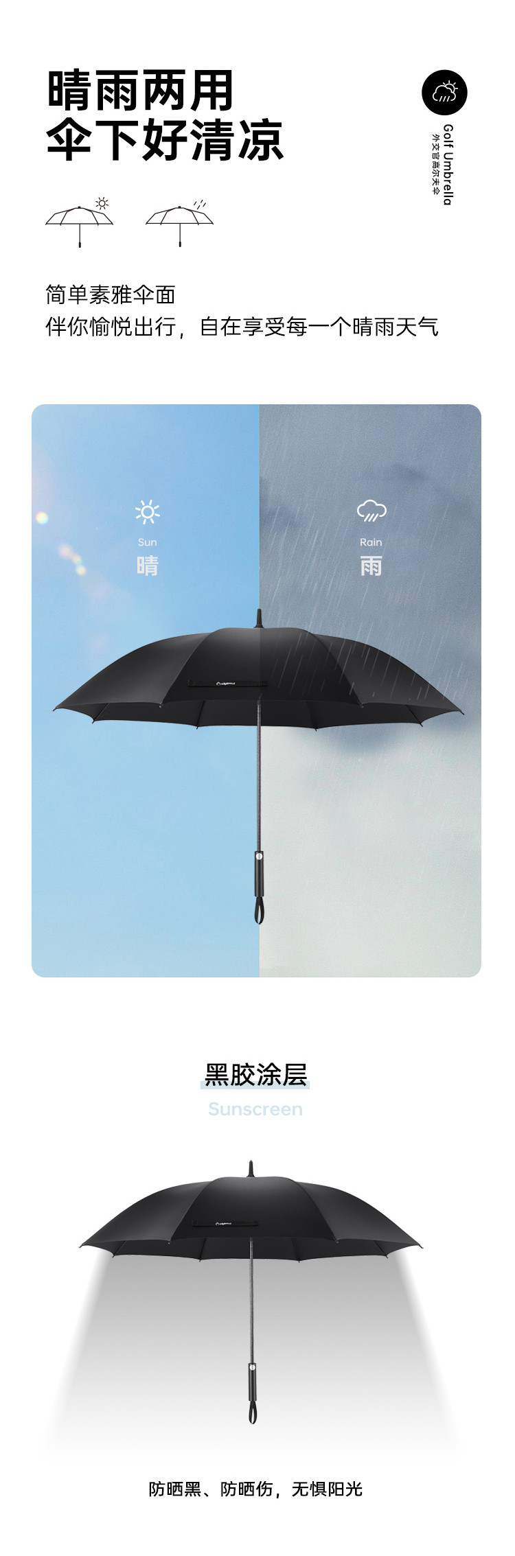 商品名称:外交官 DFJ-607 产品尺寸:147x97cm 高尔夫晴雨伞 碳黑色(单位:把)