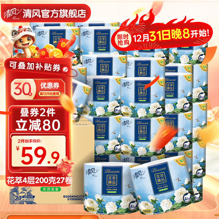 商品名称:清风 B20AGHC1 4层200g10卷 牌花萃卷纸(单位:提)