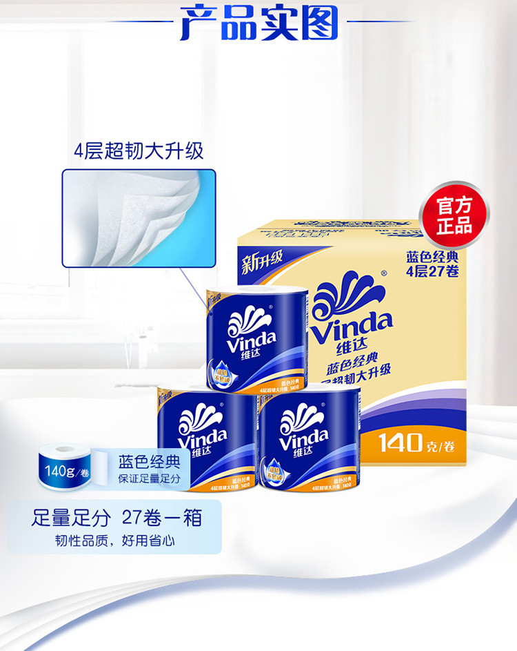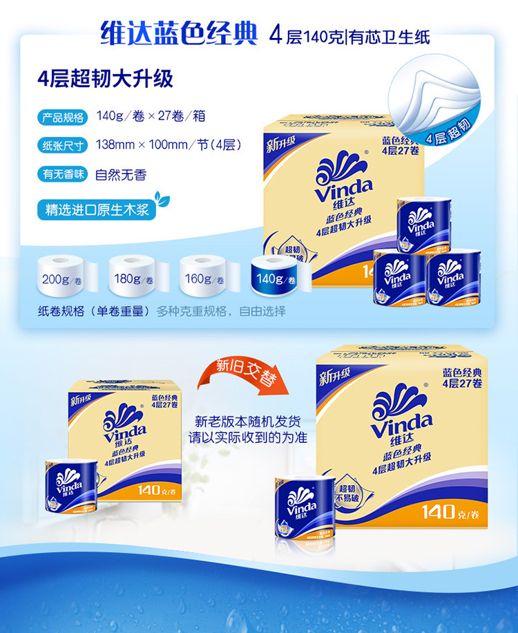 商品名称:维达 V4069-B 4层140g27卷 蓝色经典卫卷(单位:箱)