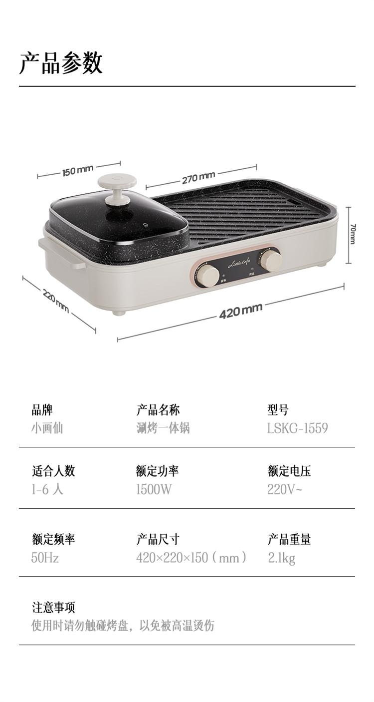 商品名称:小画仙 LSKG-1559 2L 烤涮一体两用锅 白色(单位:个)