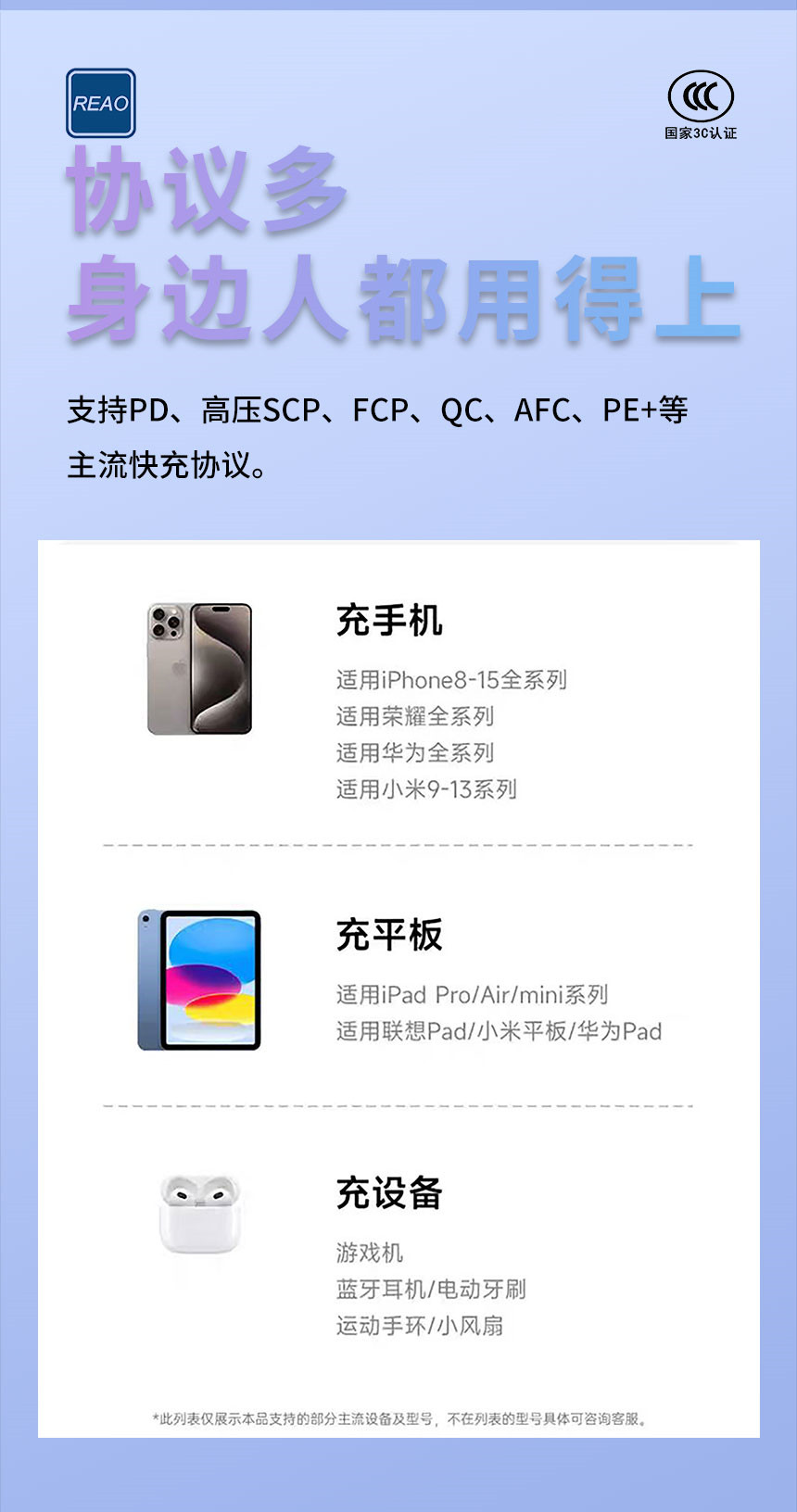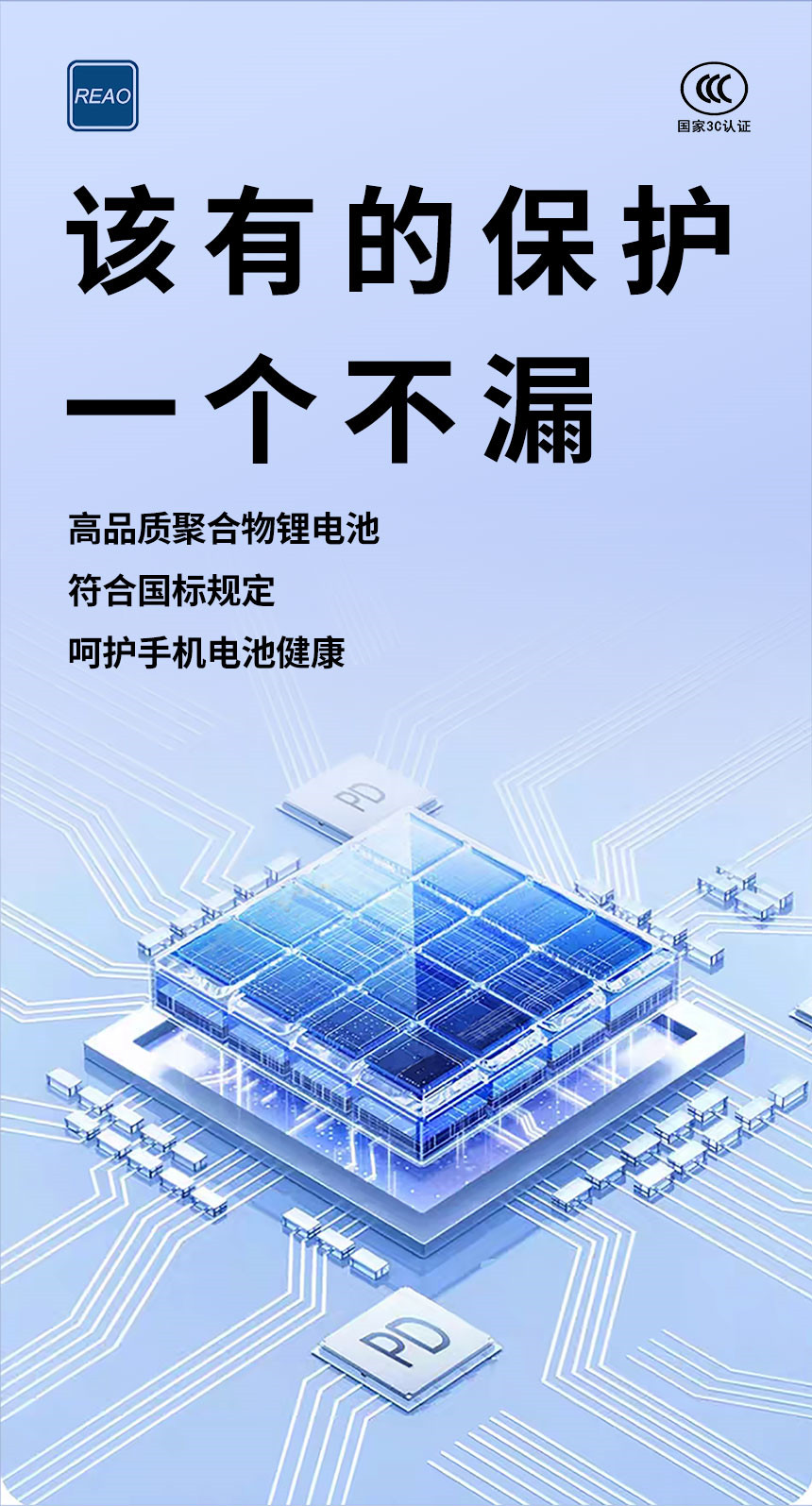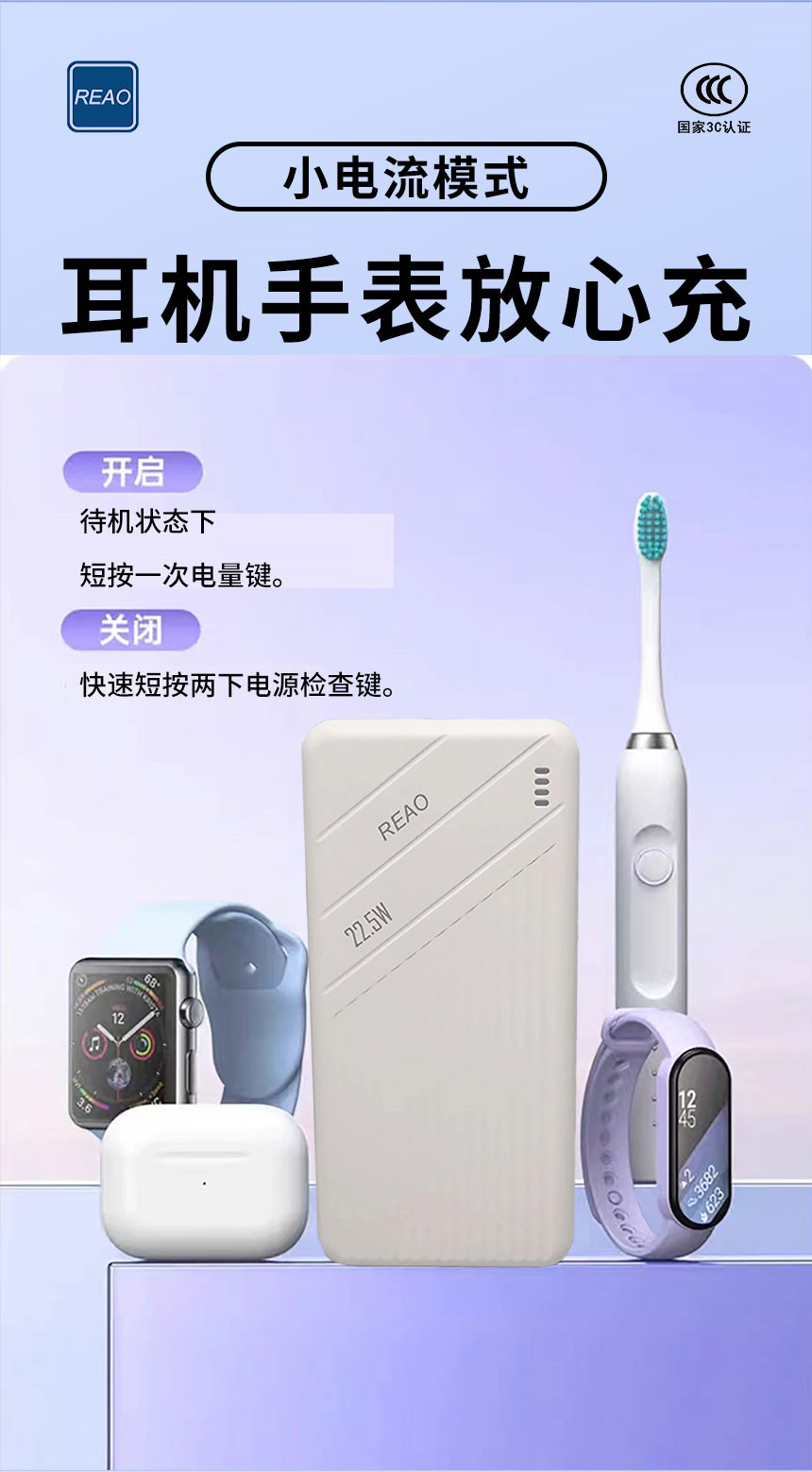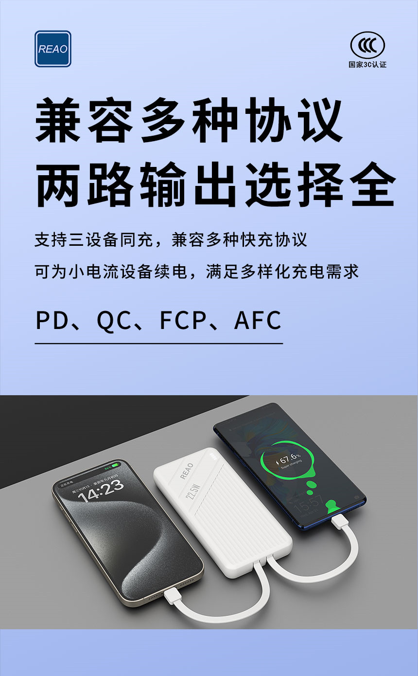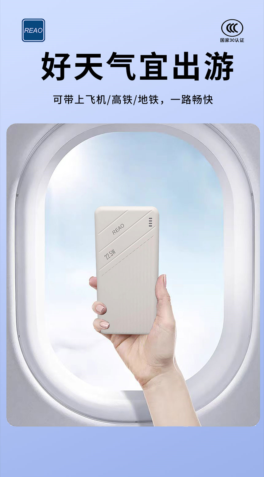 商品名称:泺澳(REAO) C10 电源容量:10000mAh 尺寸:142*68*18(mm) 自带线快充移动电源 白色(单位:个)