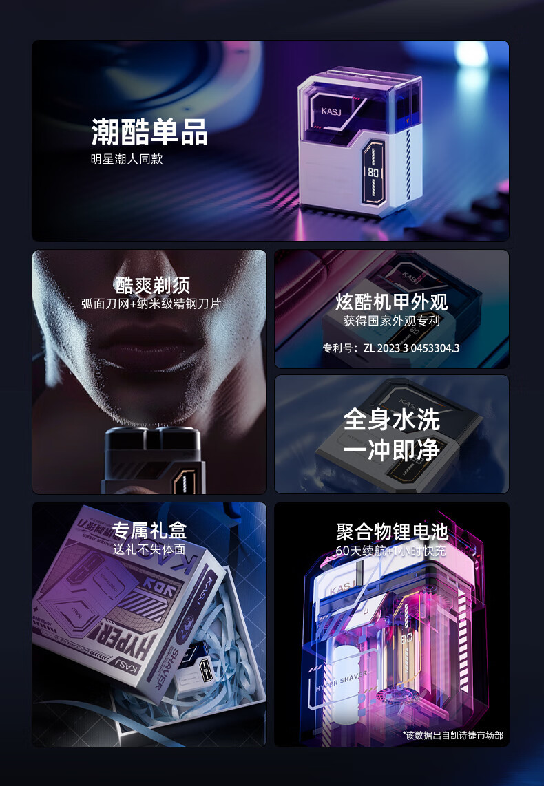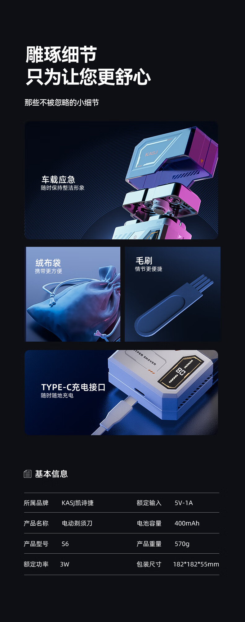商品名称:KASJ凯诗捷 S6 合金便携 电动剃须刀 凝霜白(单位:个)