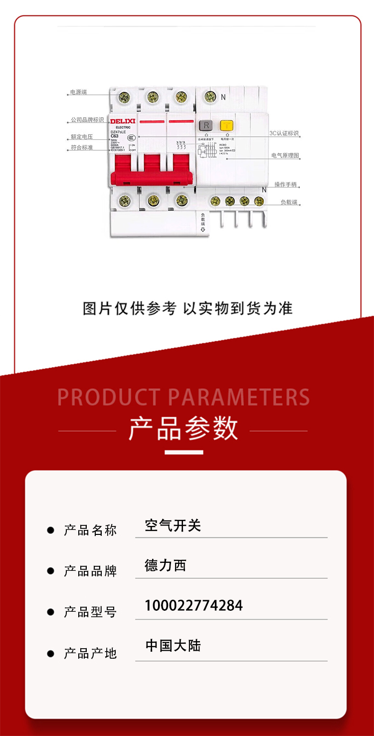 商品名称:德力西 100022774284 3P 空气开关(单位:个)