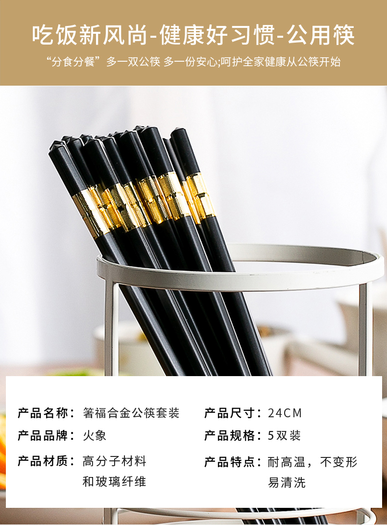 商品名称:火象 箸福合金公筷套装 HX-K083 5双/盒