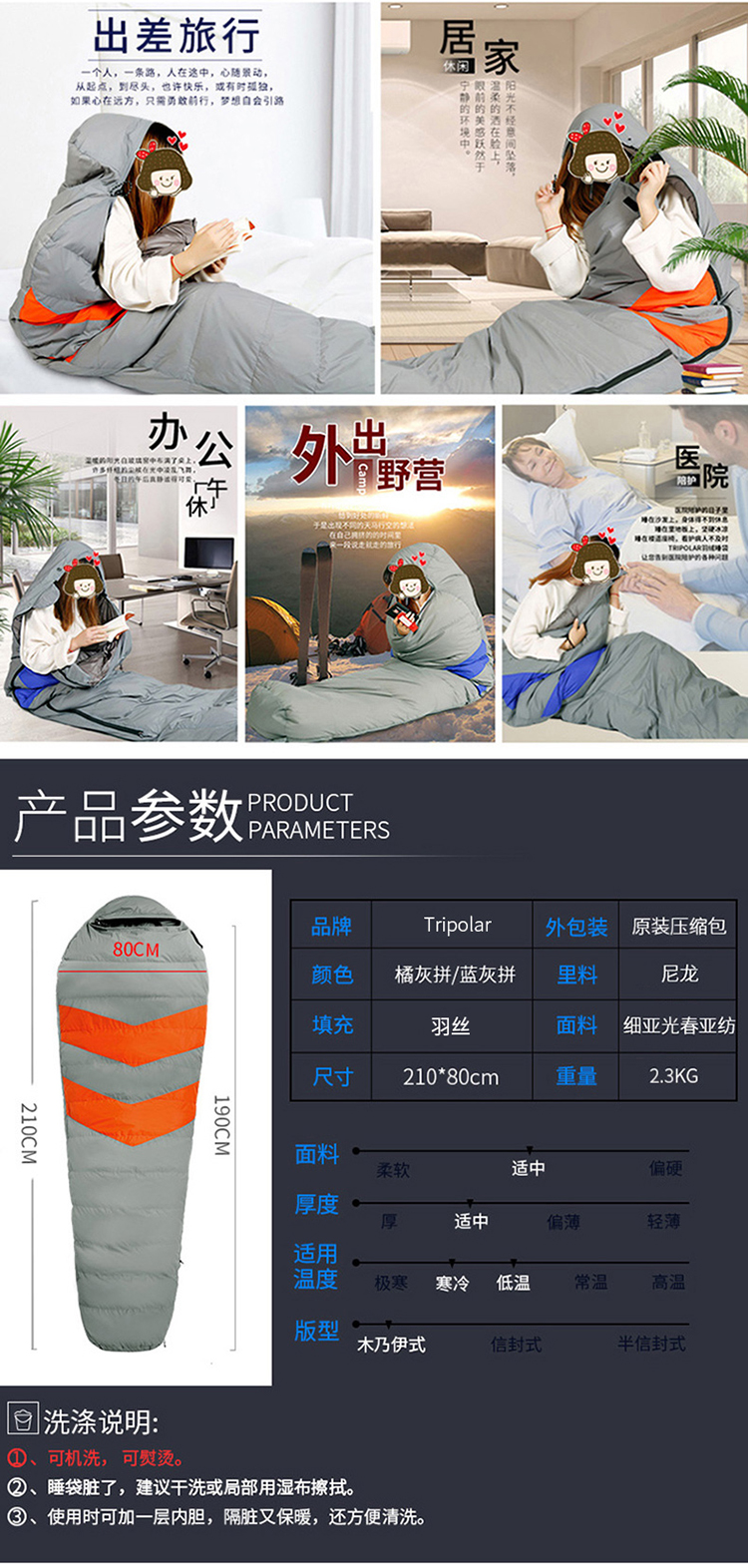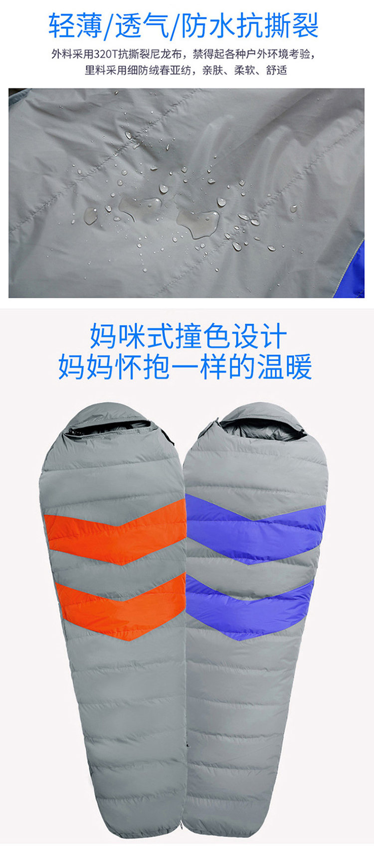 商品名称:三极 TP2926 210*80cm1.5kg 睡袋 蓝灰拼色(单位:条)