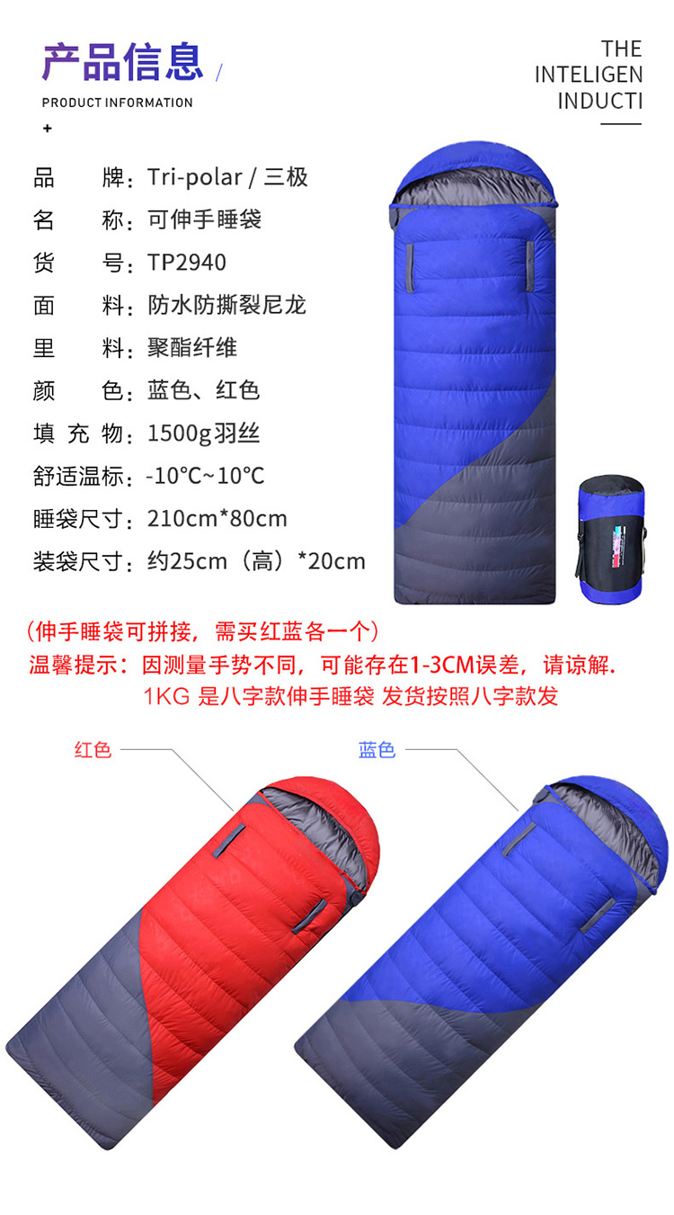 商品名称:三极 TP2940 210*80cm1.5kg 睡袋 蓝色(单位:条)