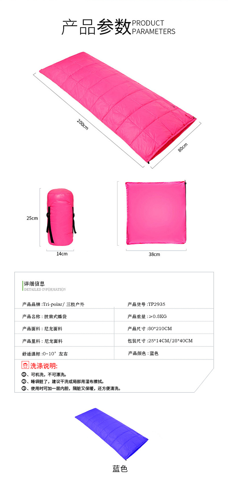 商品名称:三极 TP2935 210*80cm800g 睡袋 蓝色(单位:条)