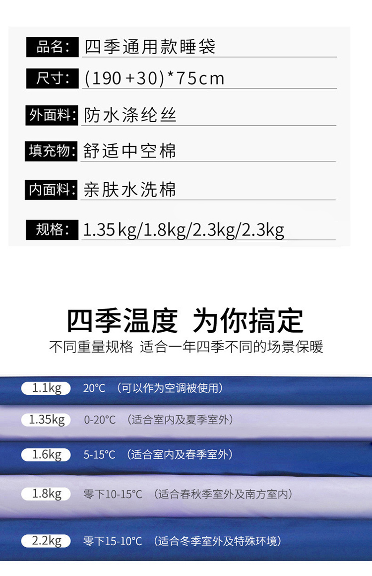商品名称:三极 TP3003 220*75cm2.3kg 睡袋 中蓝色(单位:条)