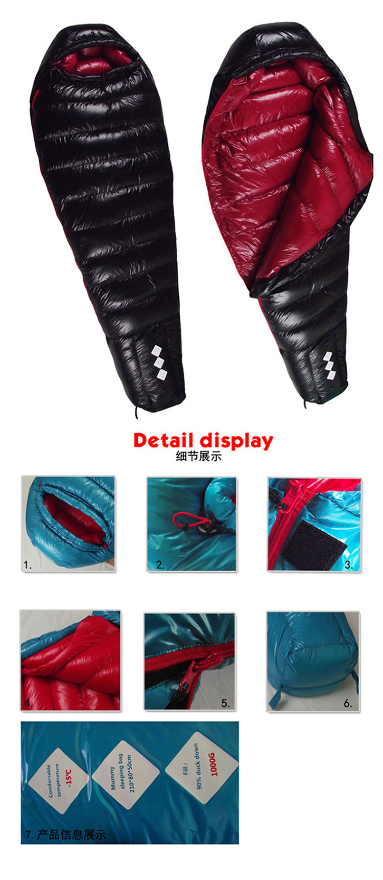 商品名称:三极 TP2989 210*80cm羽丝1500g 睡袋 湖蓝色(单位:条)