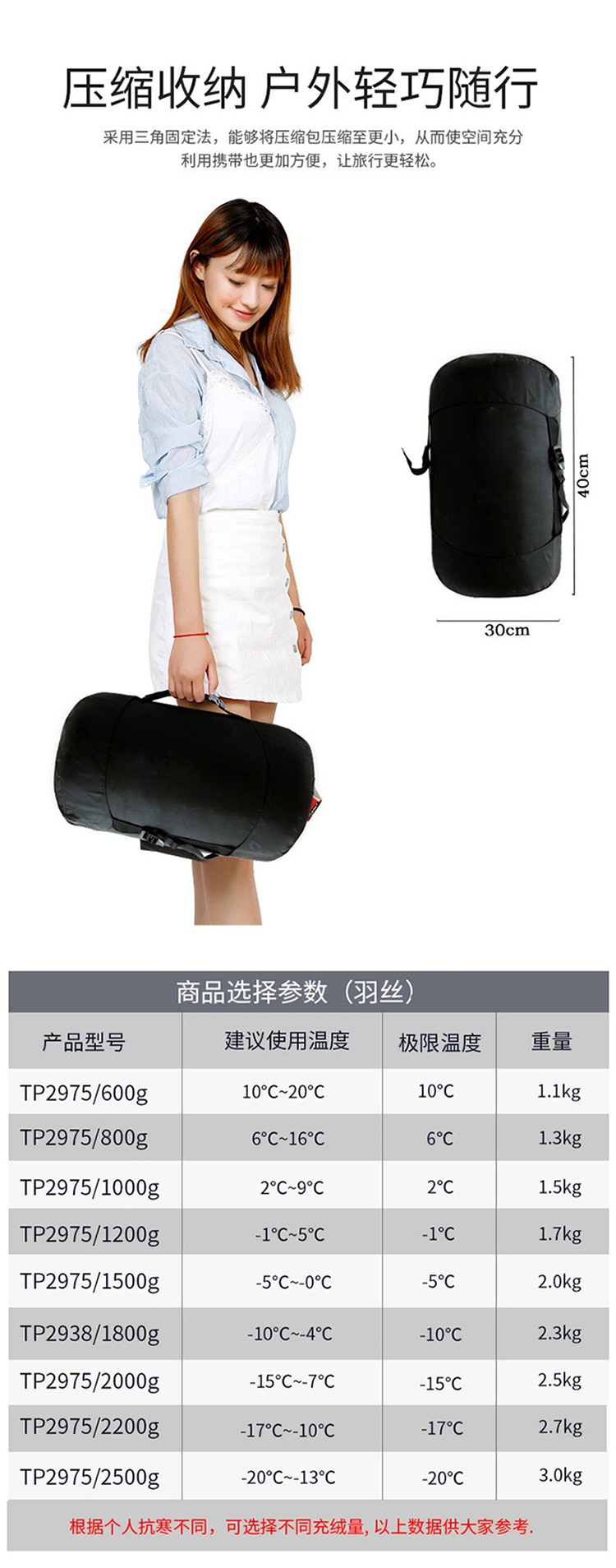 商品名称:三极 TP2975 210*80cm羽丝2000g 睡袋 蓝色(单位:条)