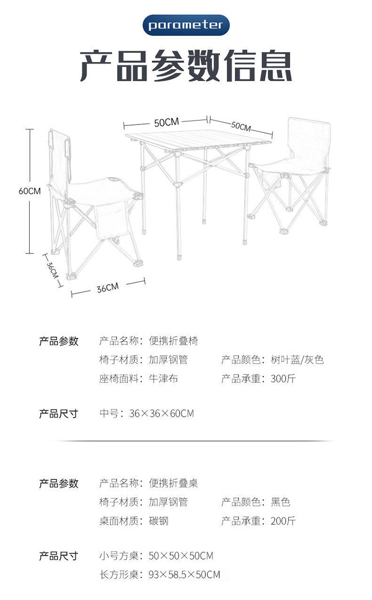 商品名称:三极 TP8812 长方桌+中号椅子*4桌93*58.5*50cm椅36*36*60cm 户外桌椅套装 树叶蓝(单位:套)