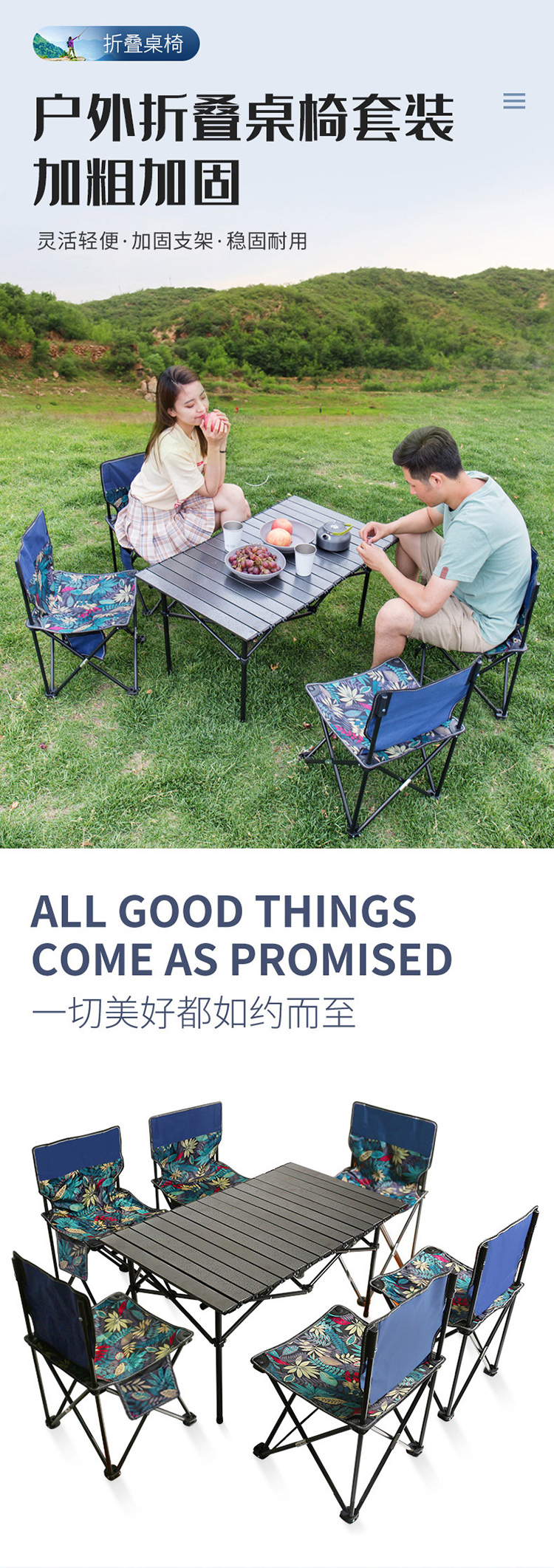 商品名称:三极 TP8812 长方桌+中号椅子*6桌93*58.5*50cm椅36*36*60cm 户外桌椅套装 树叶蓝(单位:套)