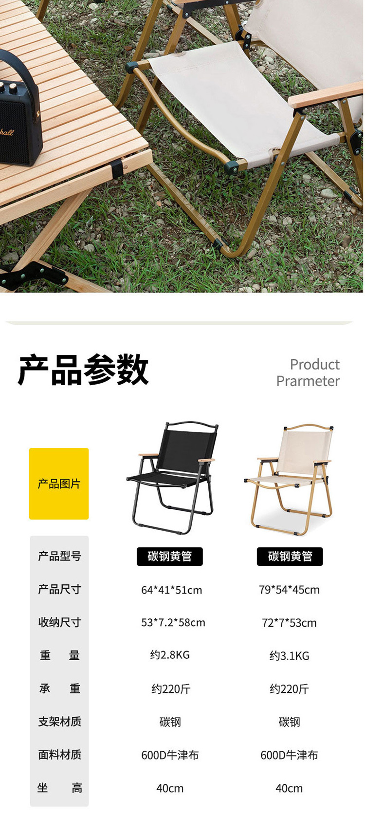 商品名称:三极 TP8872 中号铝合金桌+中号椅*4 户外桌椅套装 黄檀木纹桌+黄管卡其色椅(单位:套)