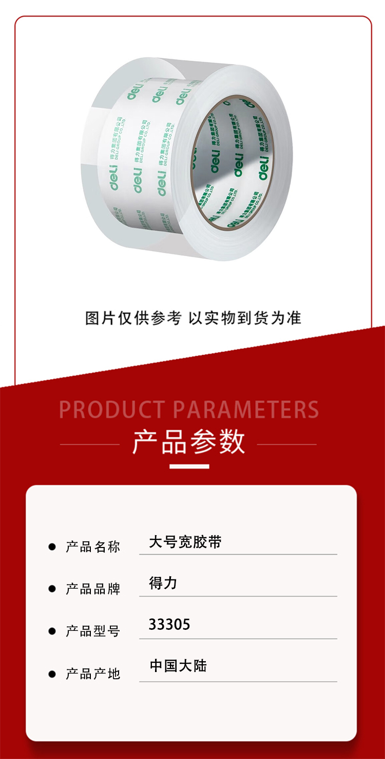 商品名称:得力 33305 4.5cm*40m 大号宽胶带(单位:卷)