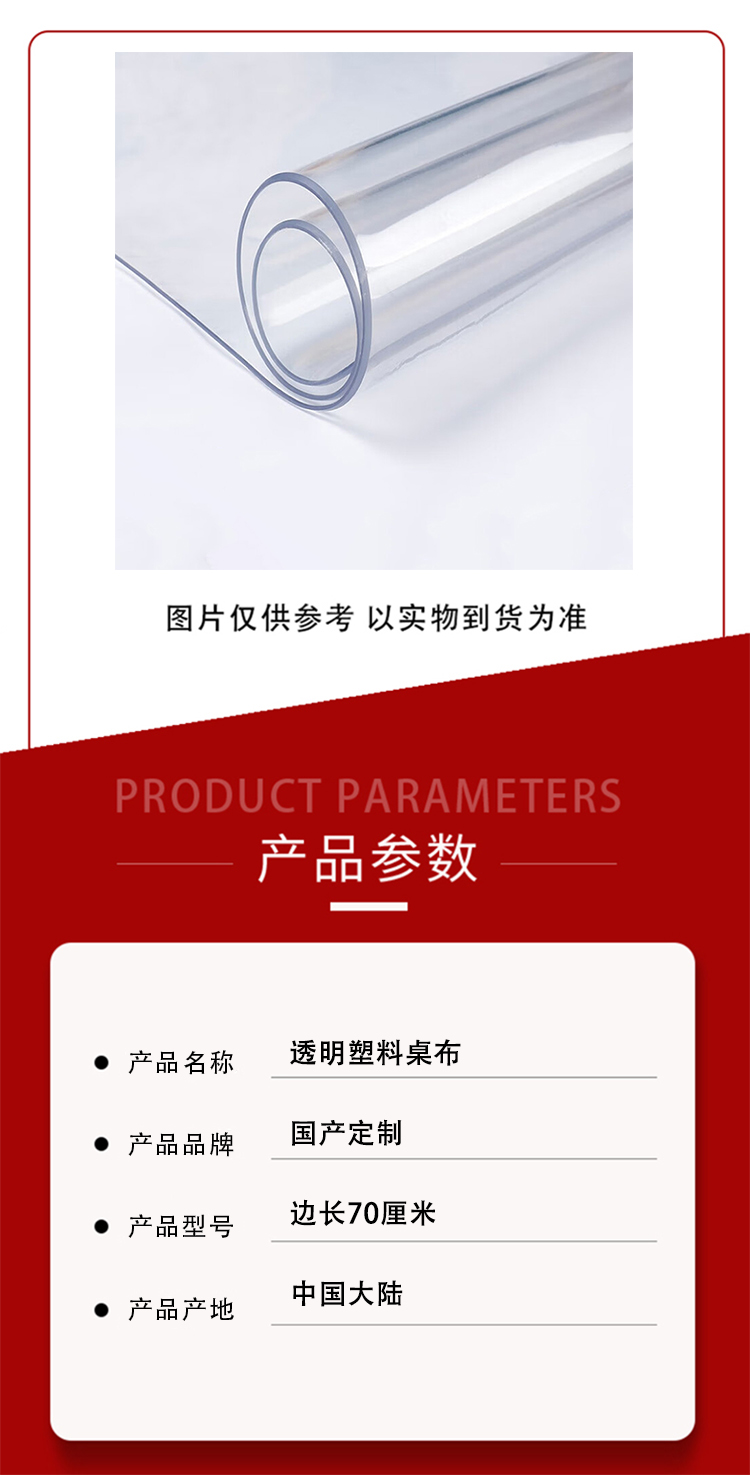 商品名称:国产定制 边长70厘米 正方形 透明塑料桌布(单位:张)