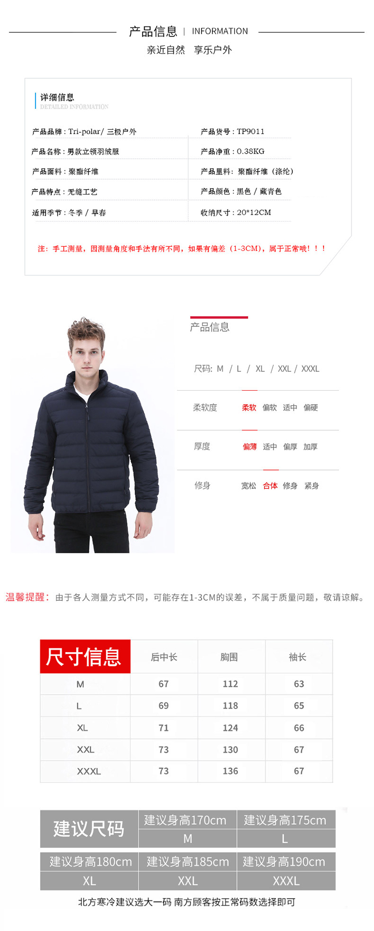 商品名称:三极 TP9011 2XL码 羽绒服 藏青色(单位:件)