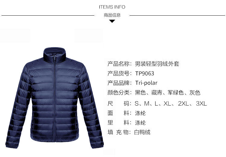商品名称:三极 TP9063 L码 羽绒服 黑色(单位:件)