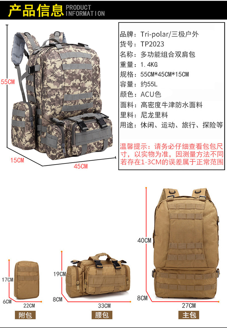 商品名称:三极 TP2023 55*45*15cm 双肩包 ACU色(单位:个)