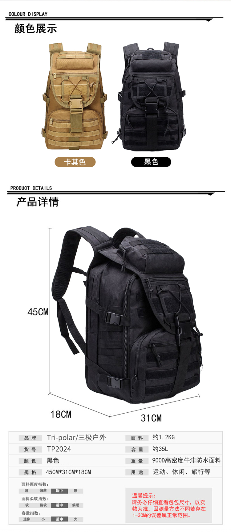 商品名称:三极 TP2024 35L45*18*31cm 双肩包 黑色(单位:个)