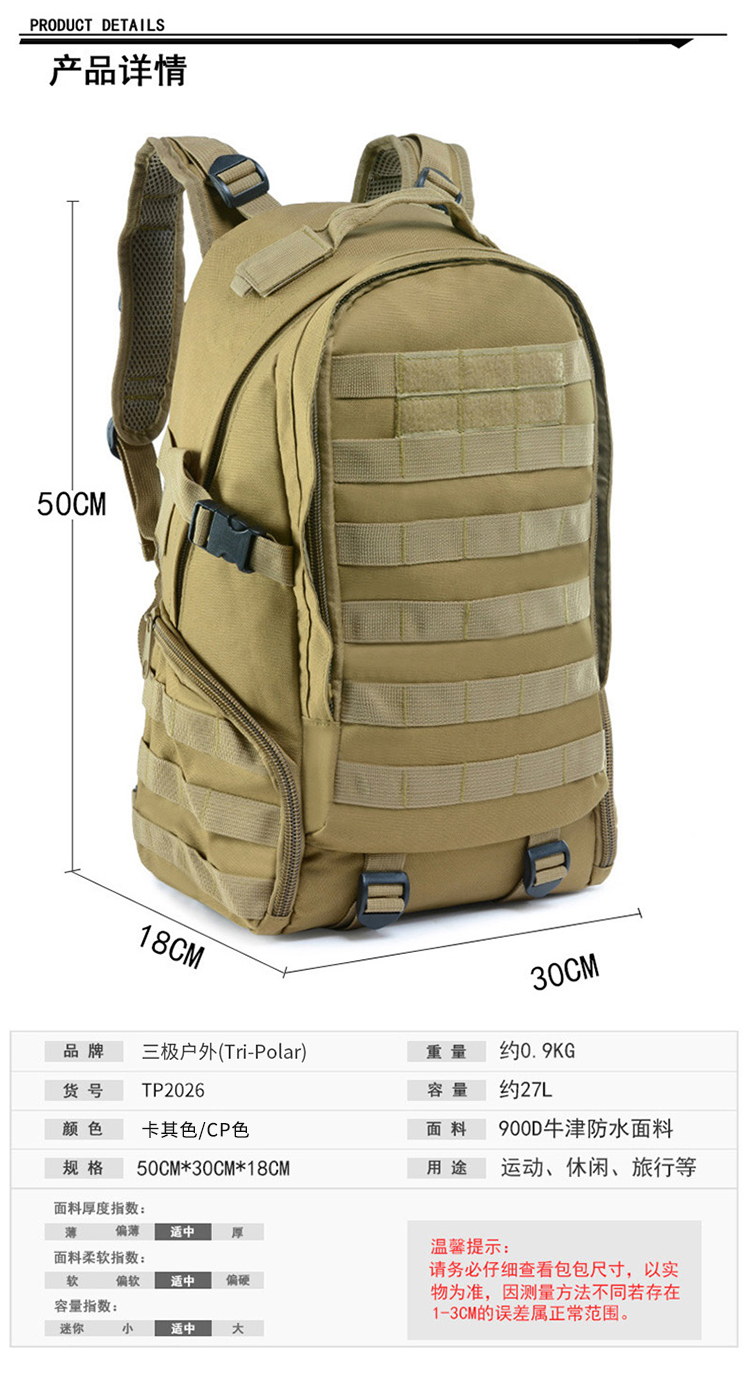 商品名称:三极 TP2026 27L50*18*30cm 双肩包 CP色(单位:个)