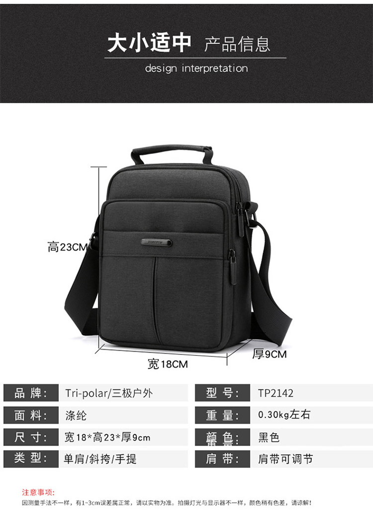 商品名称:三极 TP2142 18*9*23cm 单肩包 黑色(单位:个)