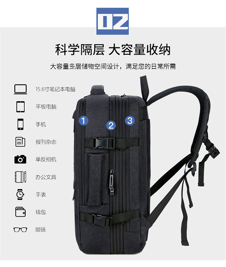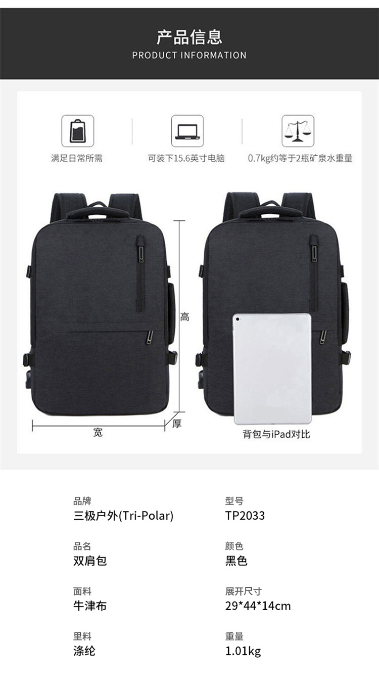 商品名称:三极 TP2033 36-55L/29*44*(14)24cm 双肩包 黑色(单位:个)