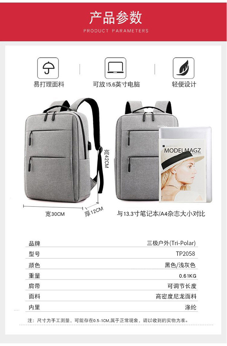 商品名称:三极 TP2058 30*12*42cm 双肩包 浅灰色(单位:个)