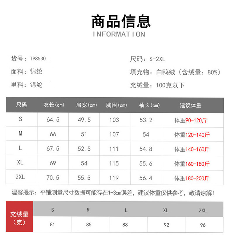 商品名称:三极 TP8530 M码 羽绒服 雾霾蓝(单位:件)