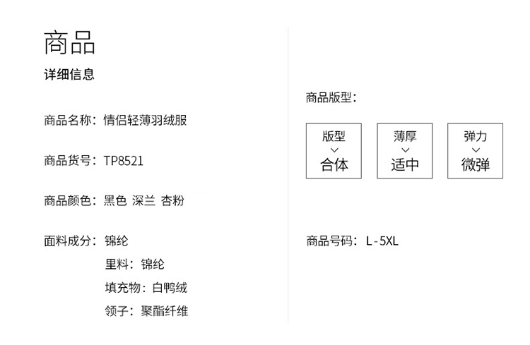 商品名称:三极 TP8521 L码 羽绒服 黑色(单位:件)