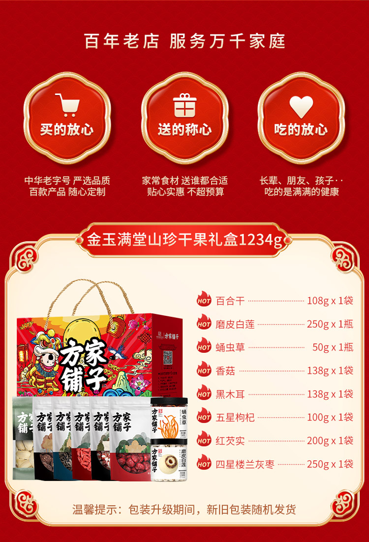商品名称:方家铺子 '6941742569780 1234g 金玉满堂年货礼盒礼盒装(单位:盒)