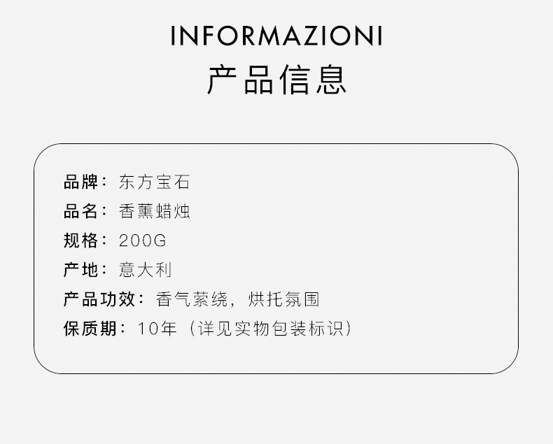商品名称:东方宝石 8008970043708 200ml 东方宝石意式典雅香薰蜡烛(单位:瓶)