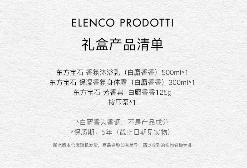 商品名称:东方宝石 YZ0169 东方宝石靓肤沐浴乳500ml*1/东方宝石靓肤滋养霜300ml*1/东方宝石芳香皂(白麝香香)*1 东方宝石靓肤滋养皂礼盒(单位:套)