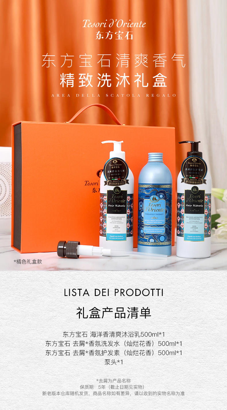 商品名称:东方宝石 YZ0171 东方宝石海洋香清爽沐浴乳500ml*1/东方宝石去屑香氛护洗发水(灿烂花香)500ml*1/东方宝石去屑香氛护护发素(灿烂花香)500ml*1 东方宝石爱马仕橙海洋香氛洗护沐三件套(单位:套)