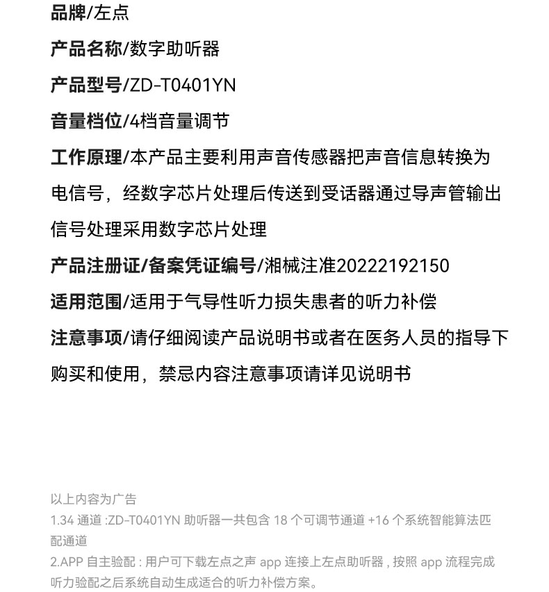 商品名称:左点 ZD-TO401YN 6972225364080 挂脖助听器(单位:个)