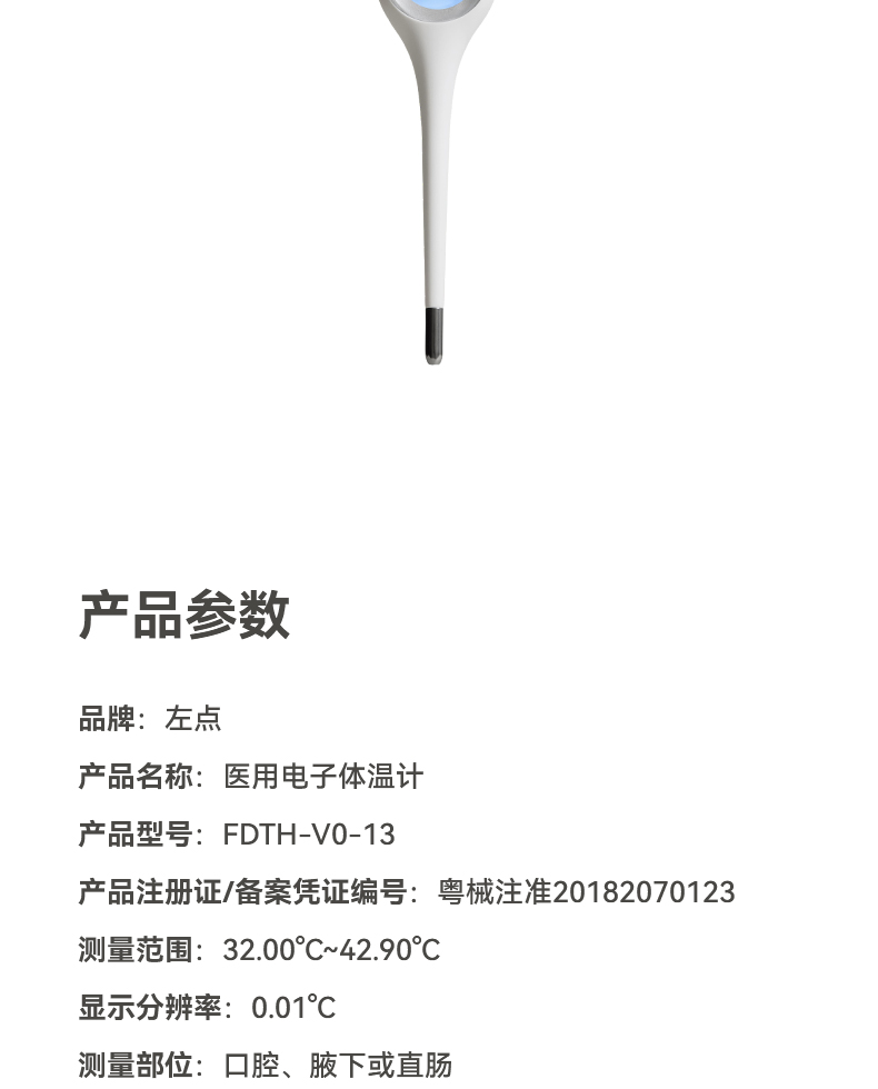 商品名称:左点 FDTH-V0-13 6972225363601 医用电子体温计(单位:个)