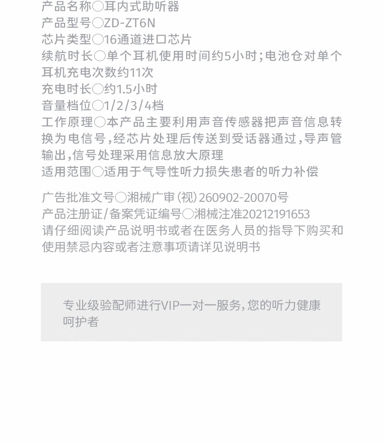 商品名称:左点 ZD-ZT6N 音量档位1/2/3/4档 ⽿内式助听器(单位:个)