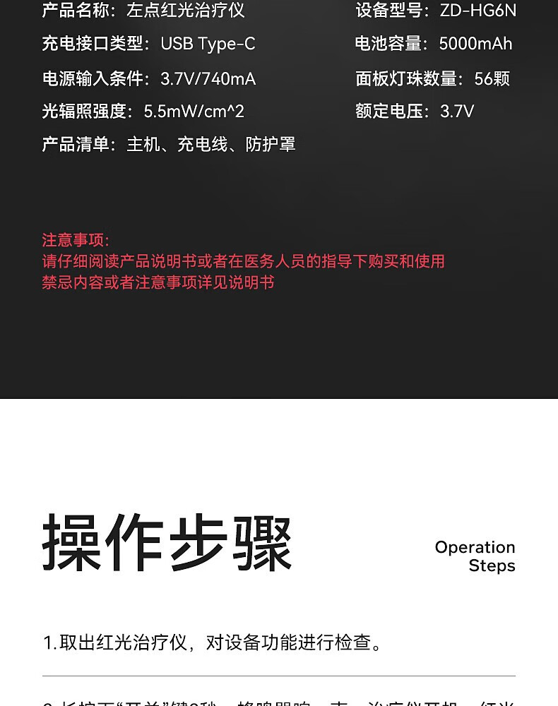 商品名称:左点 ZD-HG7N 3.7V/740mA 红光治疗仪(单位:个)