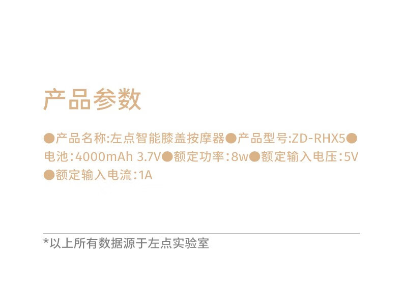 商品名称:左点 ZD-RHX5 4000mAh3.7V 膝盖按摩器(1对)(单位:对)