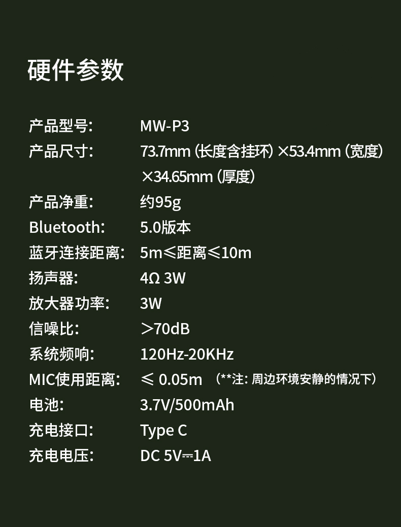 商品名称:猫王 MW-P3宝石蓝 3.7V/500mAh 小确幸便携式蓝牙音箱 宝石蓝色(单位:个)